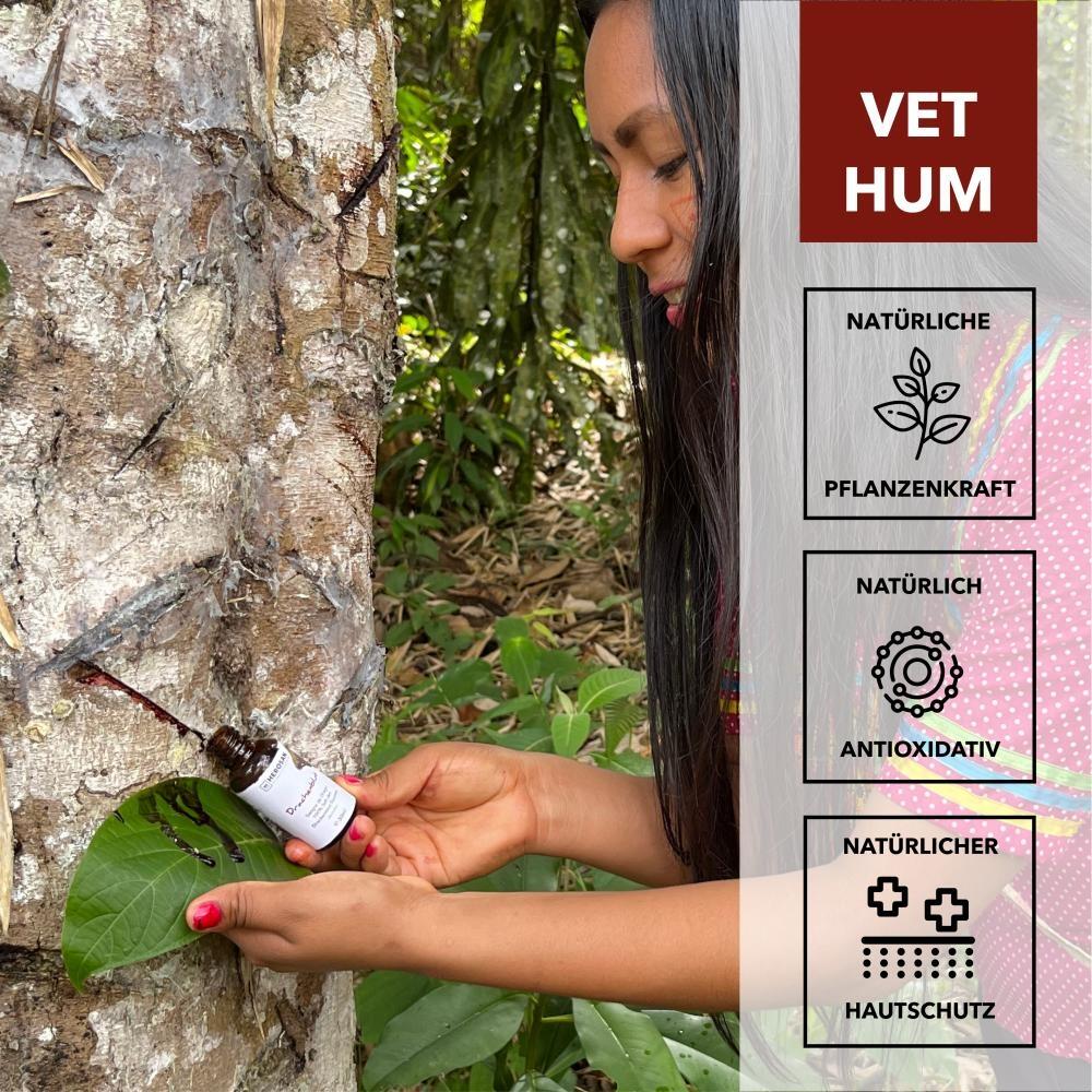 Unser höchstreines Drachenblut stammt zu 100% aus nachhaltiger, händischer Ernte durch das indigene Volk der Quichua. Unser Drachenblut wird durch das Anritzen der Rinde gewonnen. Die Pflanzen wachsen in über 1000 Meter Höhe, fernab von Luftverschmutzung und Verunreinigungen des Bodens.