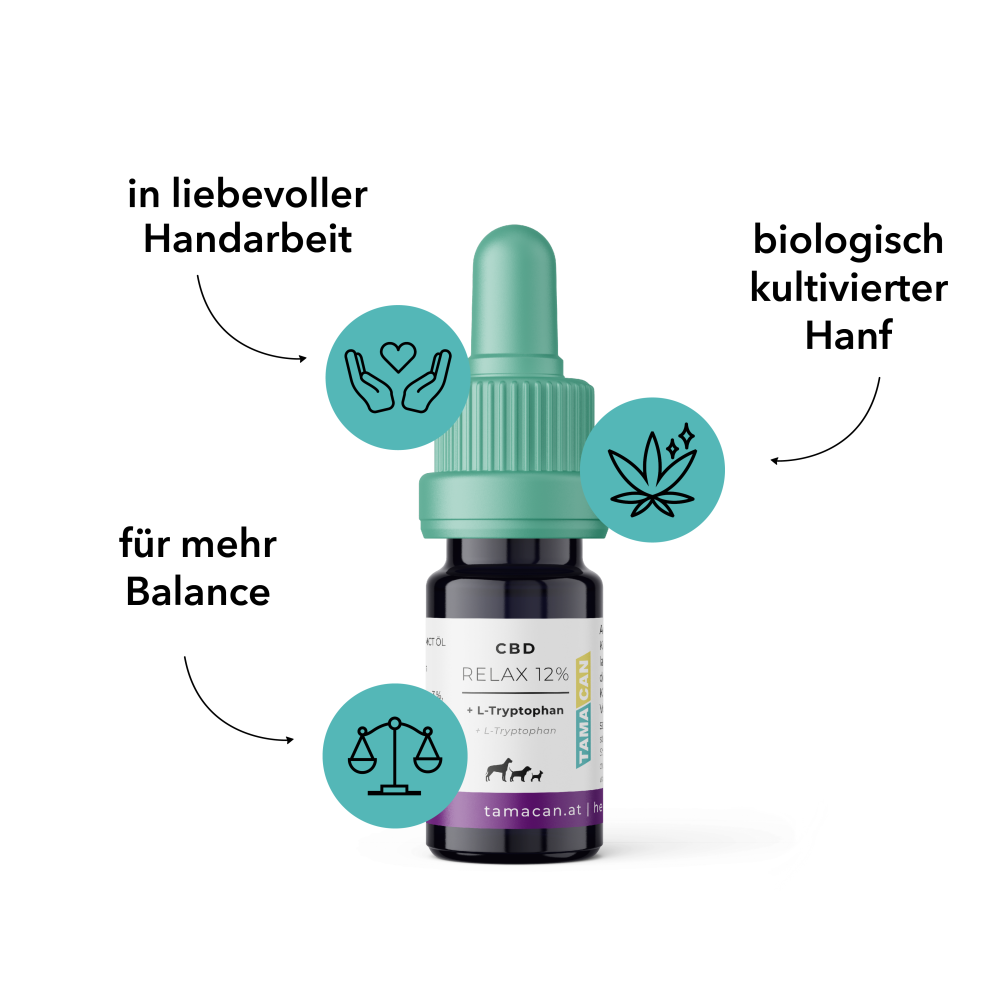 Tamacan Relax Vollspektrum Gold-Cannabisextrakt (CBD 12%)mit L-Tryptophan 3%